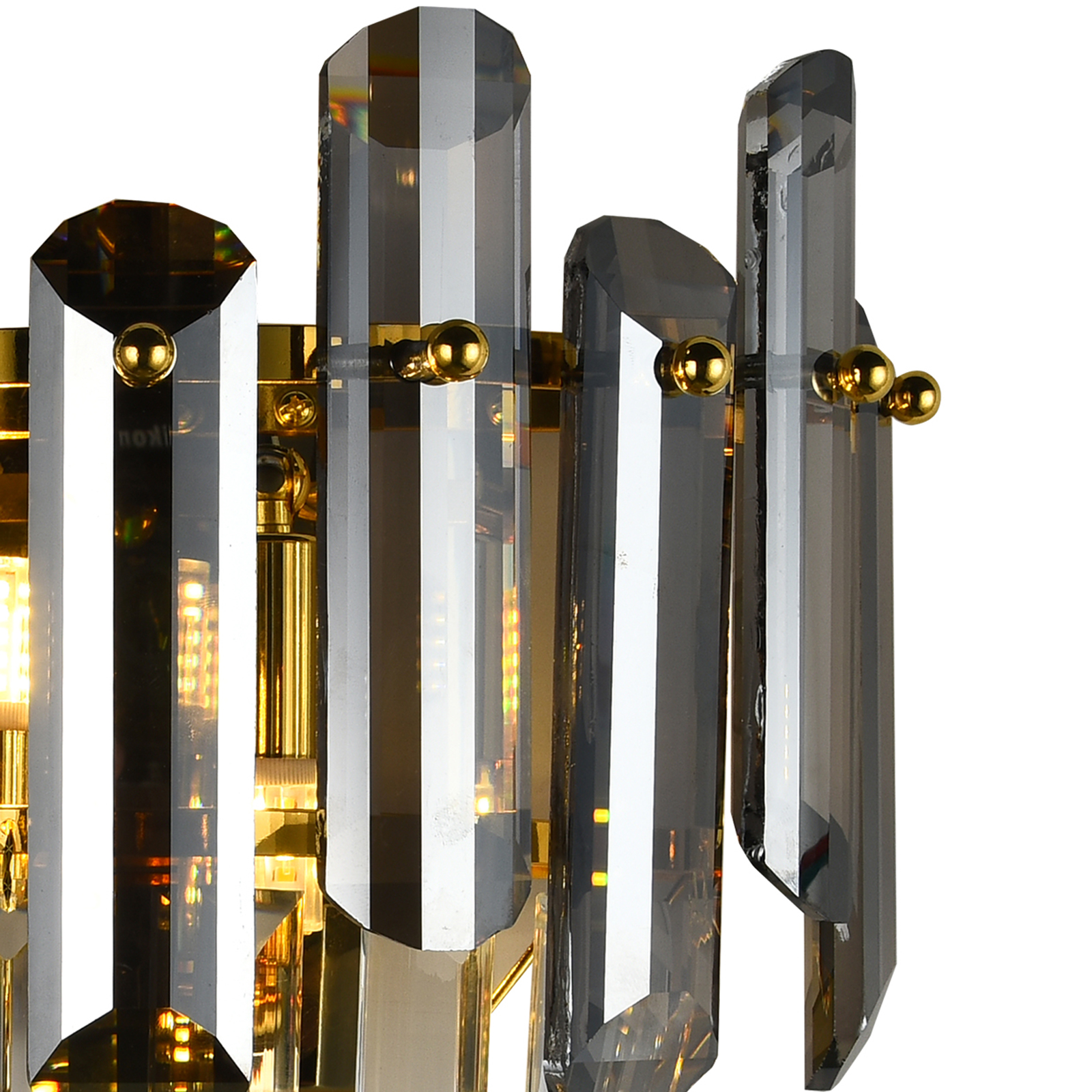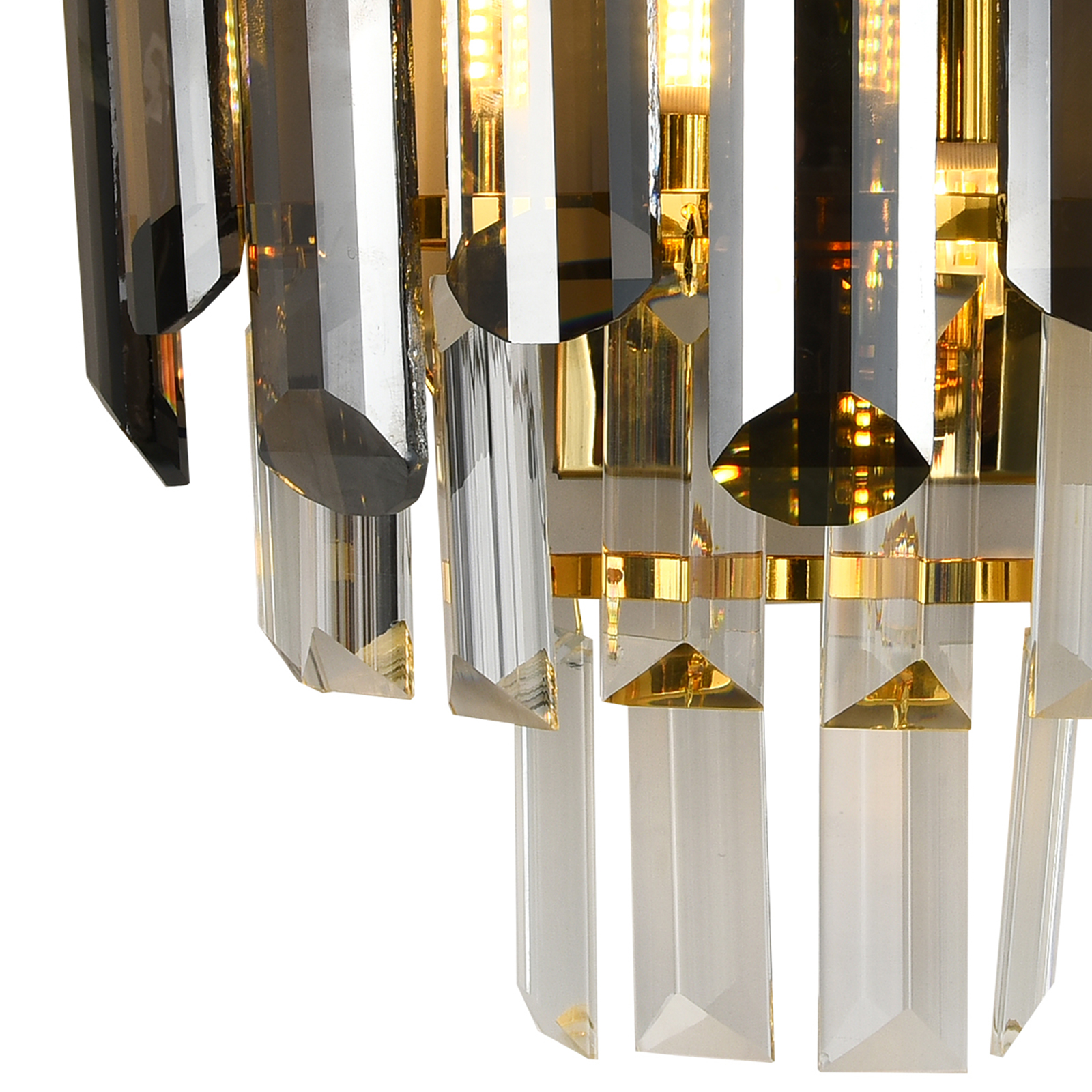 Фешенебельный светильник из серии IMPERIUM будет украшением стильного интерьера Вашего дома. В данной коллекции NATALI KOVALTSEVA используется арматура золотого цвета и высококачественный хрусталь. Основные элементы декора: изысканные хрустальные тонированные пластины цилиндрической формы создают внешний каркас и каскадная часть из прозрачного хрусталя в центре. Обработка хрустальных подвесок подвергается только машинной обработке, что придает неповторимую игру света, делает грани более четкими. Дизайн и технологическая составляющая продукции разрабатывается в R&D центре компании, который находится в г. Дюссельдорф, Германия. Производство светильников соответствует стандарту системы менеджмента качества ISO 9001-2000. На всю продукцию ТМ Natali Kovaltseva распространяется гарантия. Светильник может осветить до 5 квадратных метров. Способ крепления: планка. Светильник укомплектован информативной инструкцией на русском языке, перчатки для сборки хрусталя в комплекте.