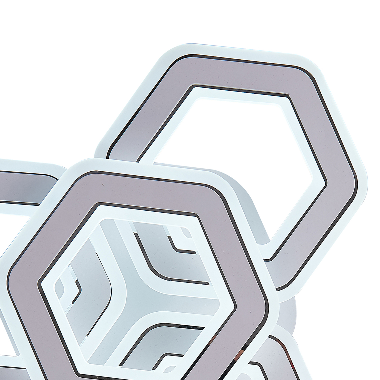 Люстра оснащена светодиодными лампами, что обеспечивает высокую энергоэффективность и долговечность. Общая мощность 120W со световым потоком 9100 lm позволяет осветить до 20 кв.м. Благодаря пульту дистанционного управления, вы можете легко регулировать яркость света, а также выбирать желаемый цвет освещения (теплый, холодный, нейтральный), создавая идеальную атмосферу в любой комнате.