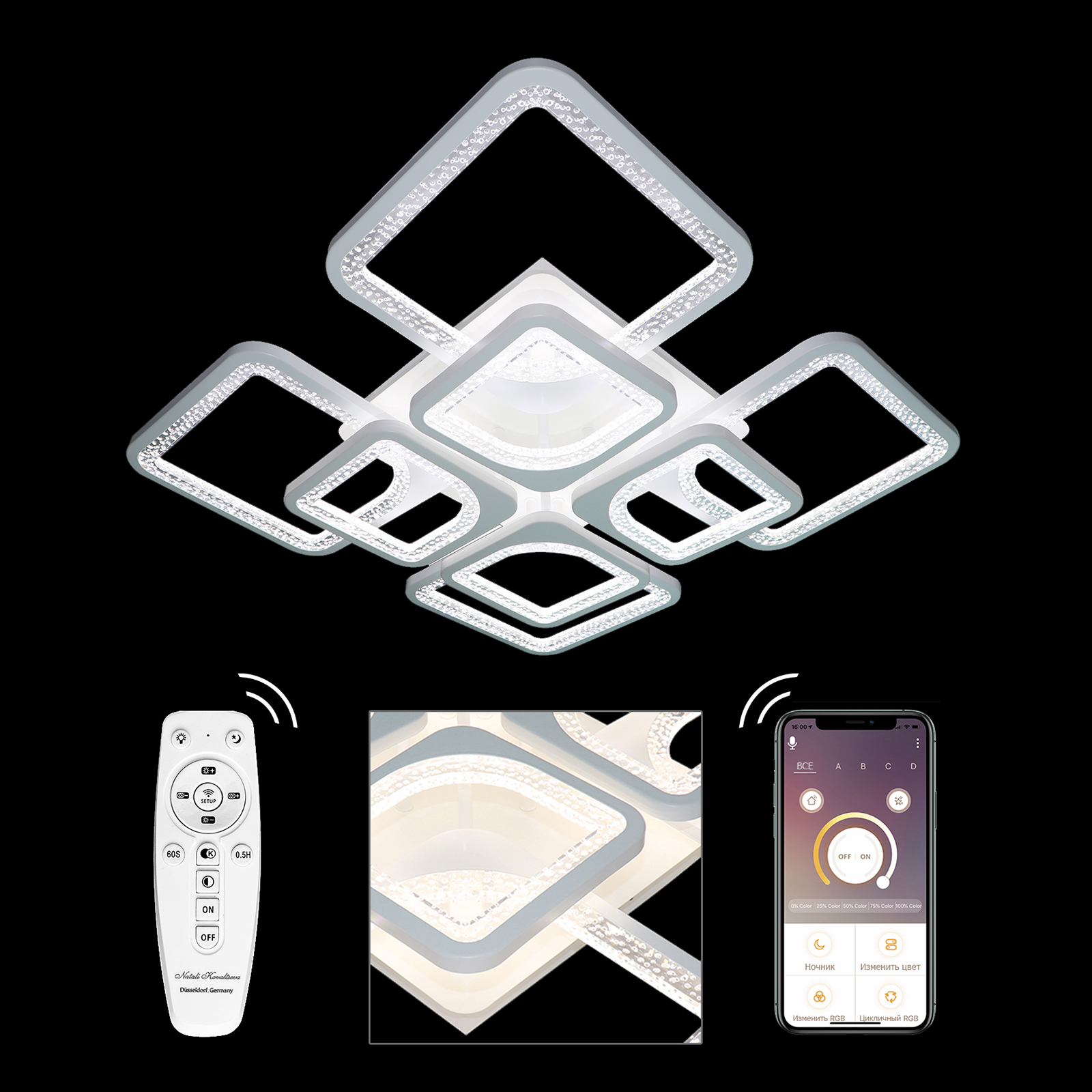 Высококачественный LED светильник в современном стиле с функционалом "умный дом". Данная люстра сочетает в себе исключительный дизайн и обширную функциональность. Лицевую часть составляют равноудалённые друг от друга рожки с симметричным дизайнерским узором, благодаря которому светильник подойдёт в любой интерьер. По их периметру расположена подсветка, которая обеспечивает отличное рассеивание света. Многофункциональный пульт управления позволит дистанционно управлять светильником. Возможность управлять светильником со смартфона и планшета, загрузив специальное приложение. Люстра имеет тёплый, естественный и холодный свет с регулировкой температуры свечения. Кроме того, имеется функция регулировки яркости свечения, делая светильник оптимальным в процессе использования. Имеет режим ночника и таймер отключения. Общая мощность лампы 160 Ватт. Потолочный светодиодный светильник может осветить до 28 метров2. Он прост в сборке, установке и экономичен в обслуживании. Подойдёт для всех видов потолков. Степень защиты 20 IP. Светодиодные ленты и платы легко заменимы в случае перегорания. Цветовая температура от 2700 до 7000Kelvin(K). Состав: Металл, Акрил. Световой поток 12600 lm.