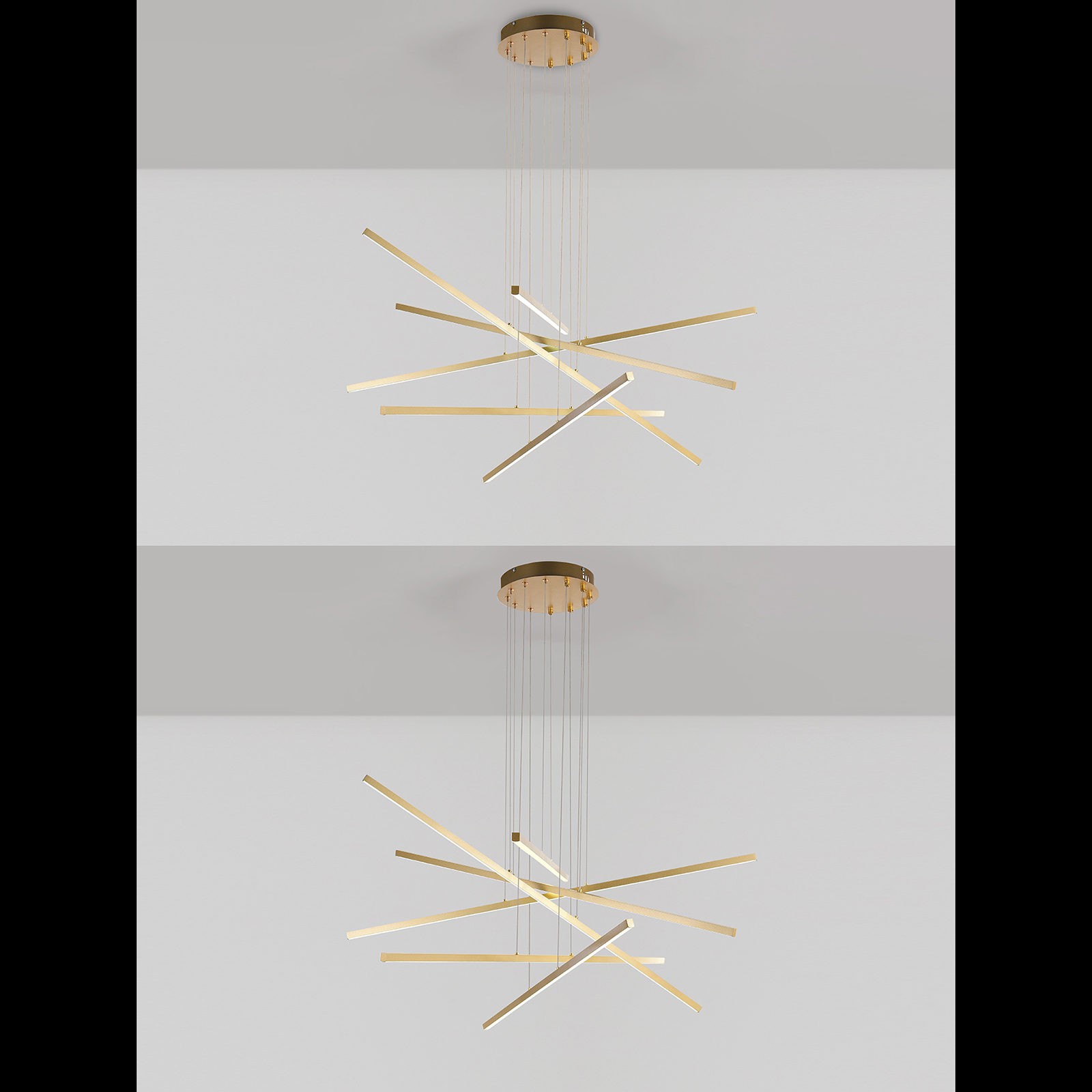 Светодиодный светильник люстра с пультом ДУ, моб приложением для управления со смартфона, планшета. Светильник имеет шесть строгих направляющих прямой формы. По периметру располагается контурное свечение, благодаря которому светильник подойдёт в любой интерьер. Высота люстры регулируется, можно настроить нужный наклон направляющей. Люстра имеет тёплый, естественный и холодный свет с регулировкой температуры свечения. Обладает плавной настройкой яркости в диапазоне от 10% до 100%. Имеется режим ночника и таймер отключения. От стандартного выключателя люстра имеет 4 режима свечения. Общая мощность 200W со световым потоком 13000 lm позволяет осветить до 25 кв.м. Он прост в сборке, установке и экономичен в обслуживании. Светодиоды легко заменимы в случае перегорания. Люстра подойдёт для всех видов потолков. Цветовая температура настраивается от 3000 до 6500 K. Степень защиты 20 IP.