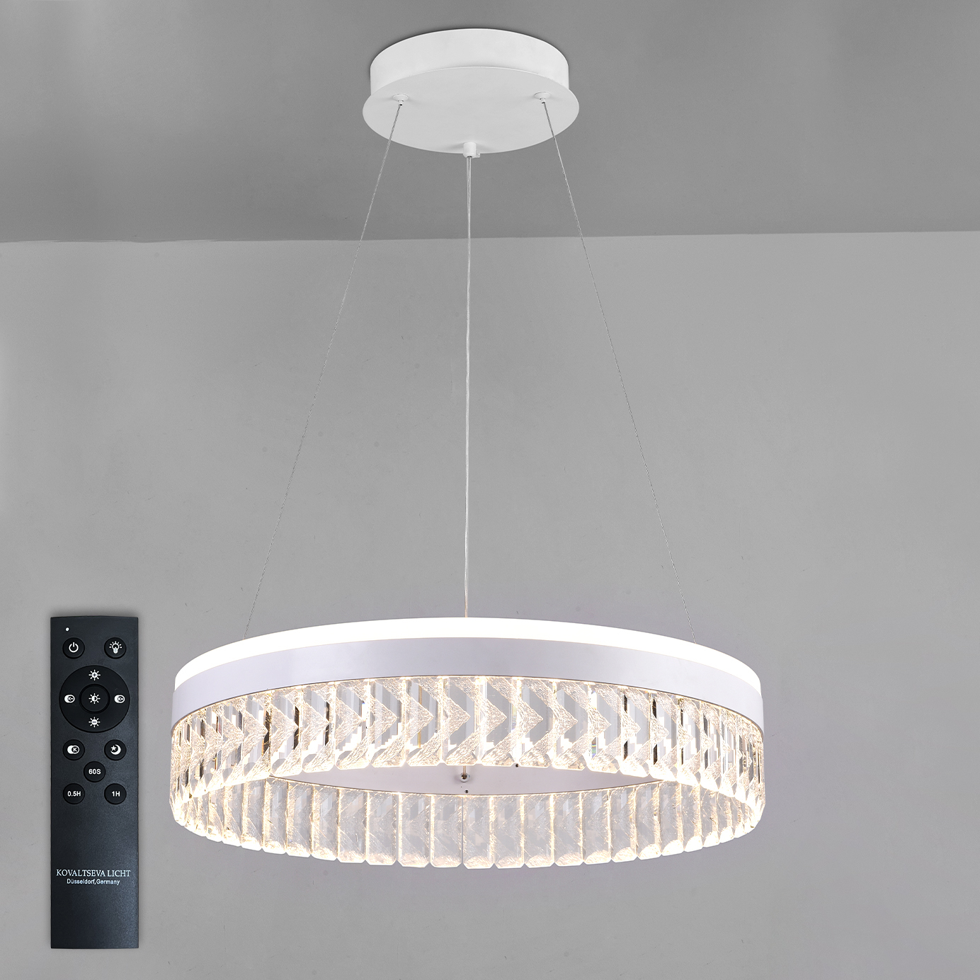 Люстра оснащена светодиодными лампами, что обеспечивает высокую энергоэффективность и долговечность. Общая мощность 120W со световым потоком 6600 lm позволяет осветить до 20 кв.м. Благодаря пульту дистанционного управления, вы можете легко регулировать яркость света, а также выбирать желаемый цвет освещения (теплый, холодный, нейтральный), создавая идеальную атмосферу в любой комнате.