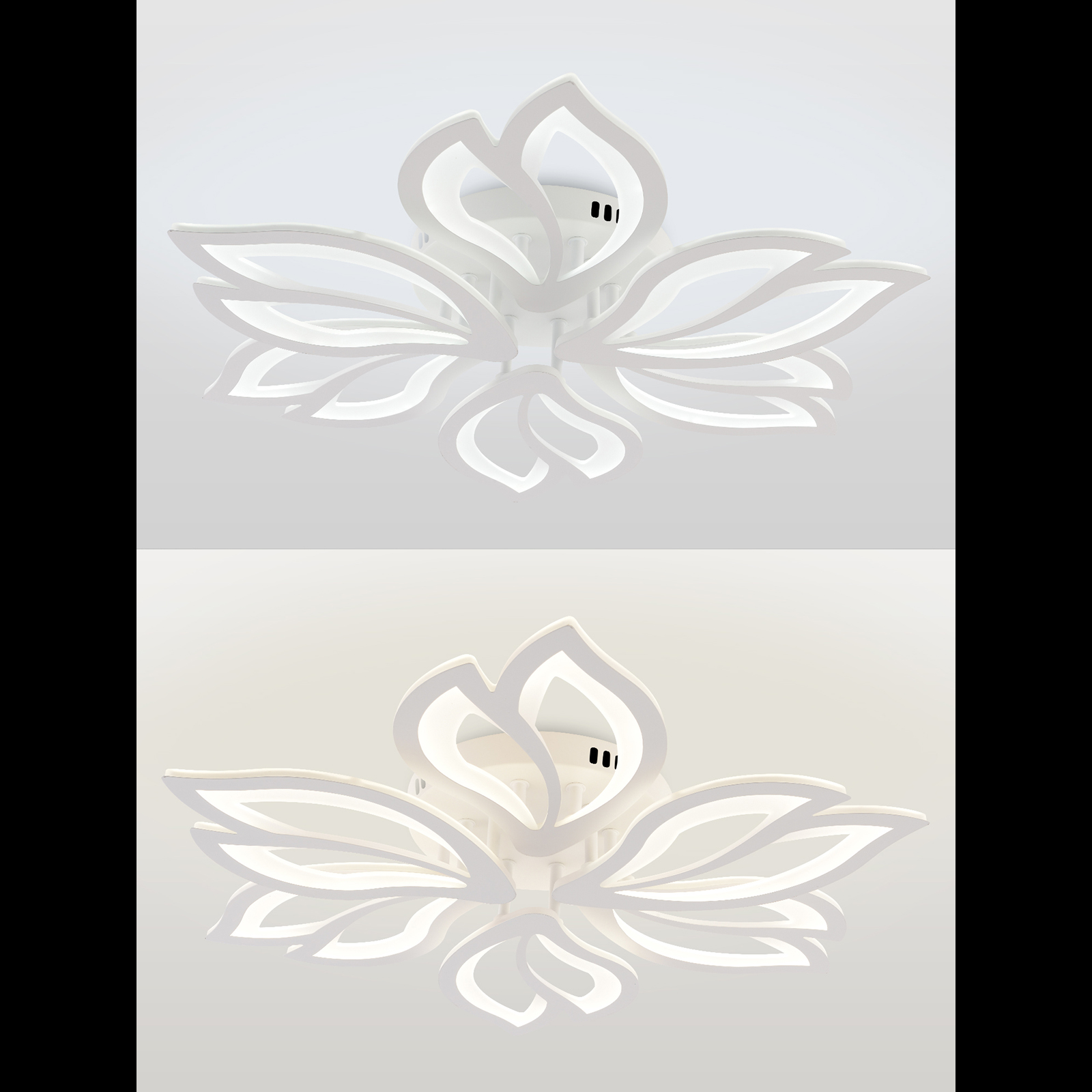 Люстра оснащена светодиодными лампами, что обеспечивает высокую энергоэффективность и долговечность. Общая мощность 132W со световым потоком 9240 lm позволяет осветить до 28 кв.м. Благодаря пульту дистанционного управления, вы можете легко регулировать яркость света, а также выбирать желаемый цвет освещения (теплый, холодный, нейтральный), создавая идеальную атмосферу в любой комнате.