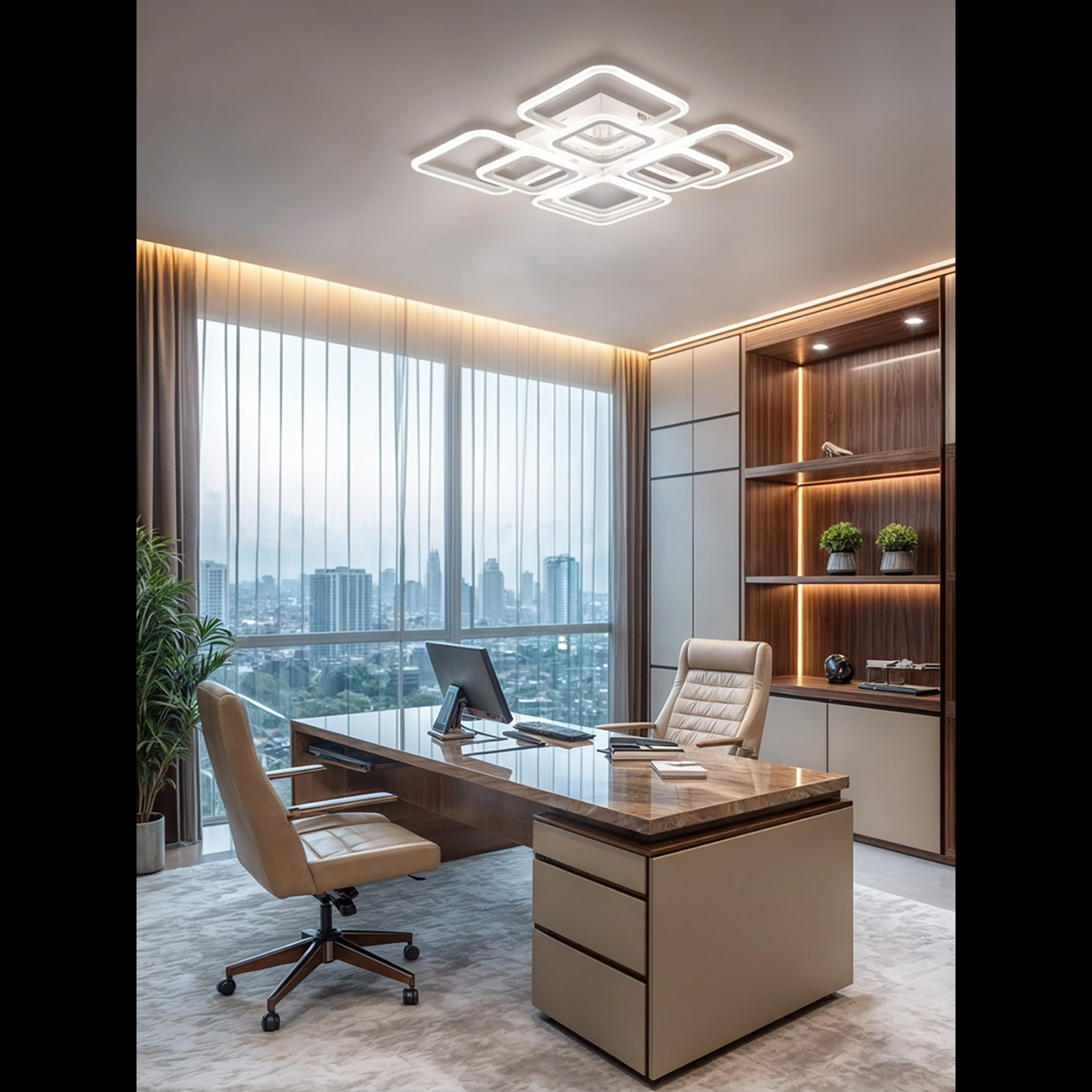 Люстра оснащена светодиодными лампами, что обеспечивает высокую энергоэффективность и долговечность. Общая мощность 168W со световым потоком 11760 lm позволяет осветить до 26 кв.м. Благодаря пульту дистанционного управления, вы можете легко регулировать яркость света, а также выбирать желаемый цвет освещения (теплый, холодный, нейтральный), создавая идеальную атмосферу в любой комнате.