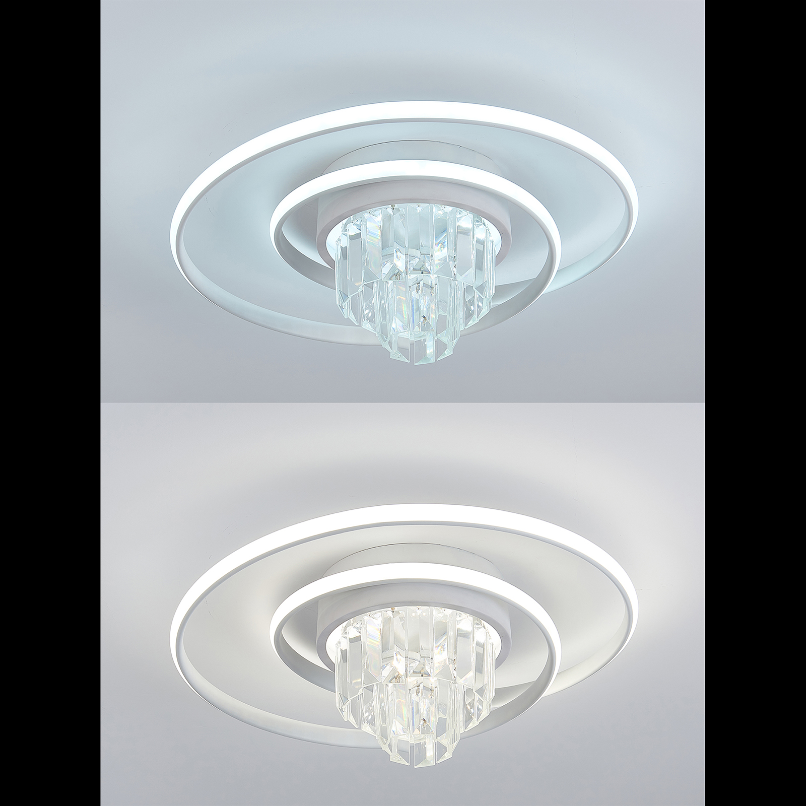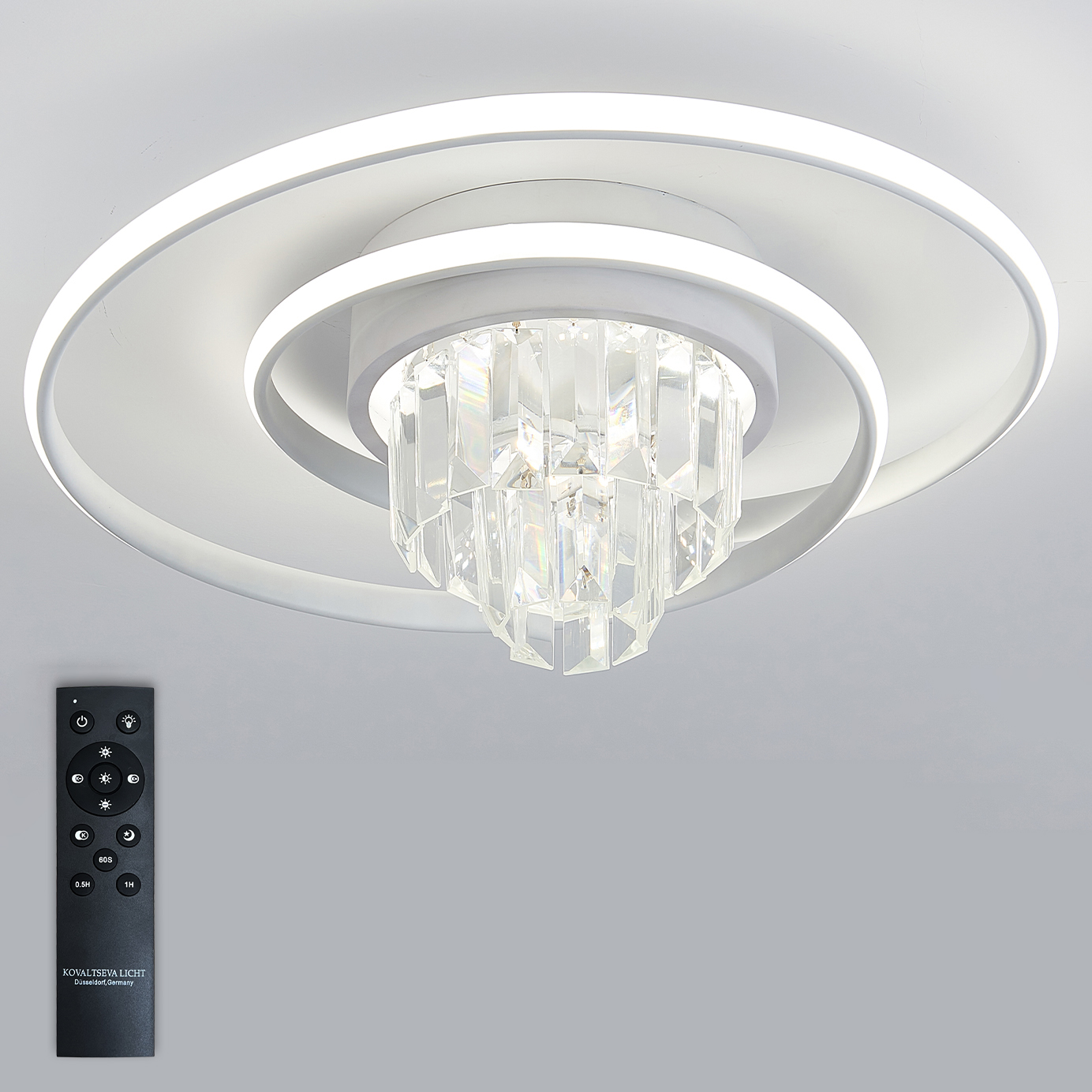 Люстра оснащена светодиодными лампами, что обеспечивает высокую энергоэффективность и долговечность. Общая мощность 80W со световым потоком 4300 lm позволяет осветить до 14 кв.м. Благодаря пульту дистанционного управления, вы можете легко регулировать яркость света, а также выбирать желаемый цвет освещения (теплый, холодный, нейтральный), создавая идеальную атмосферу в любой комнате.