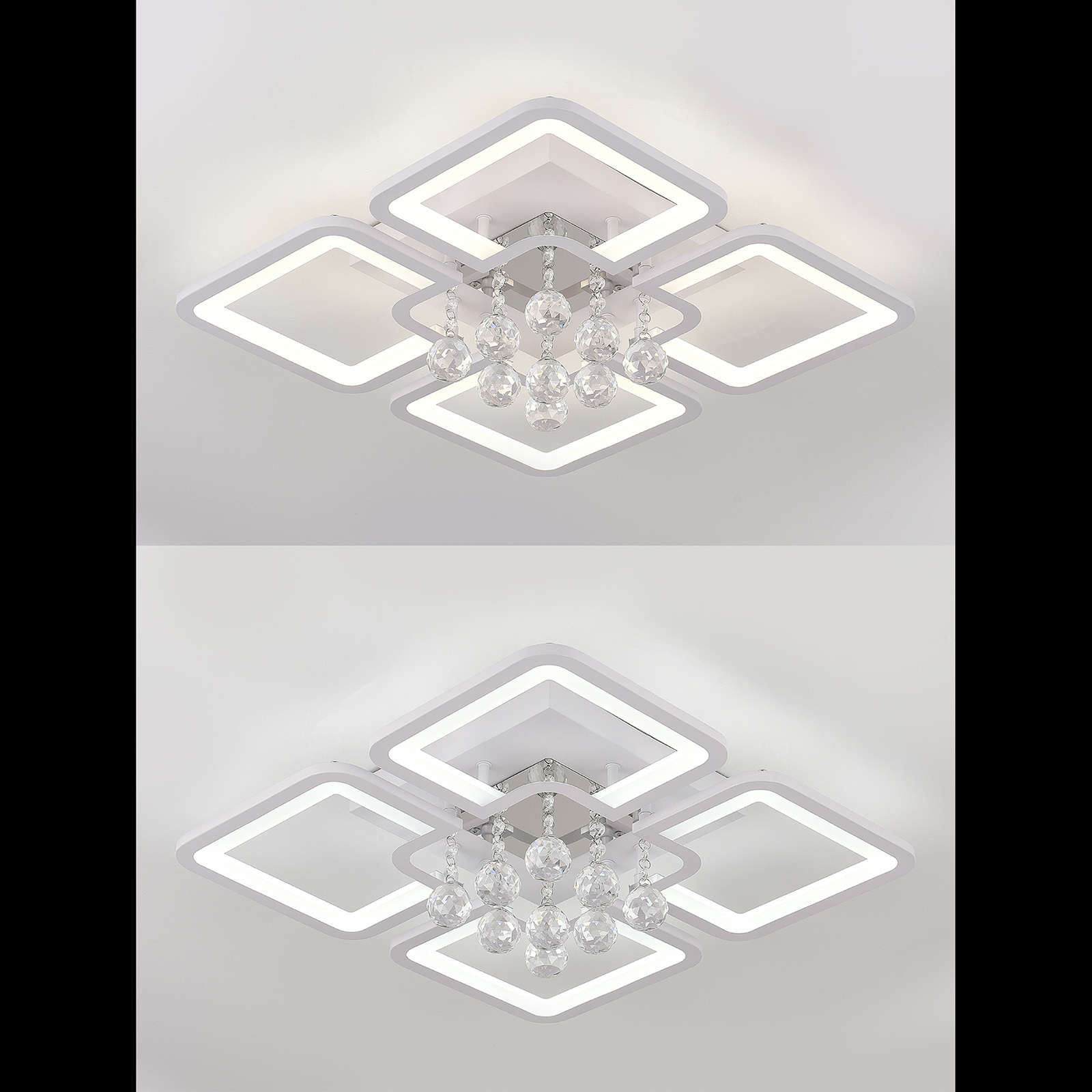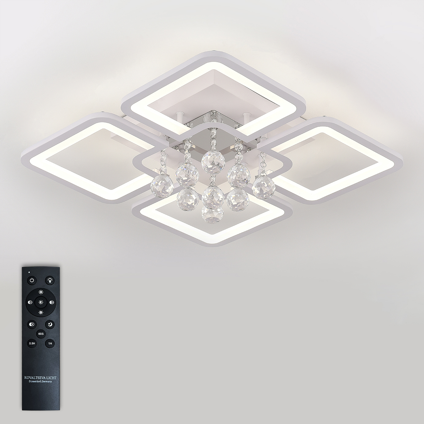 Люстра оснащена светодиодными лампами, что обеспечивает высокую энергоэффективность и долговечность. Общая мощность 100W со световым потоком 6500 lm позволяет осветить до 18 кв.м. Благодаря пульту дистанционного управления, вы можете легко регулировать яркость света, а также выбирать желаемый цвет освещения (теплый, холодный, нейтральный), создавая идеальную атмосферу в любой комнате.