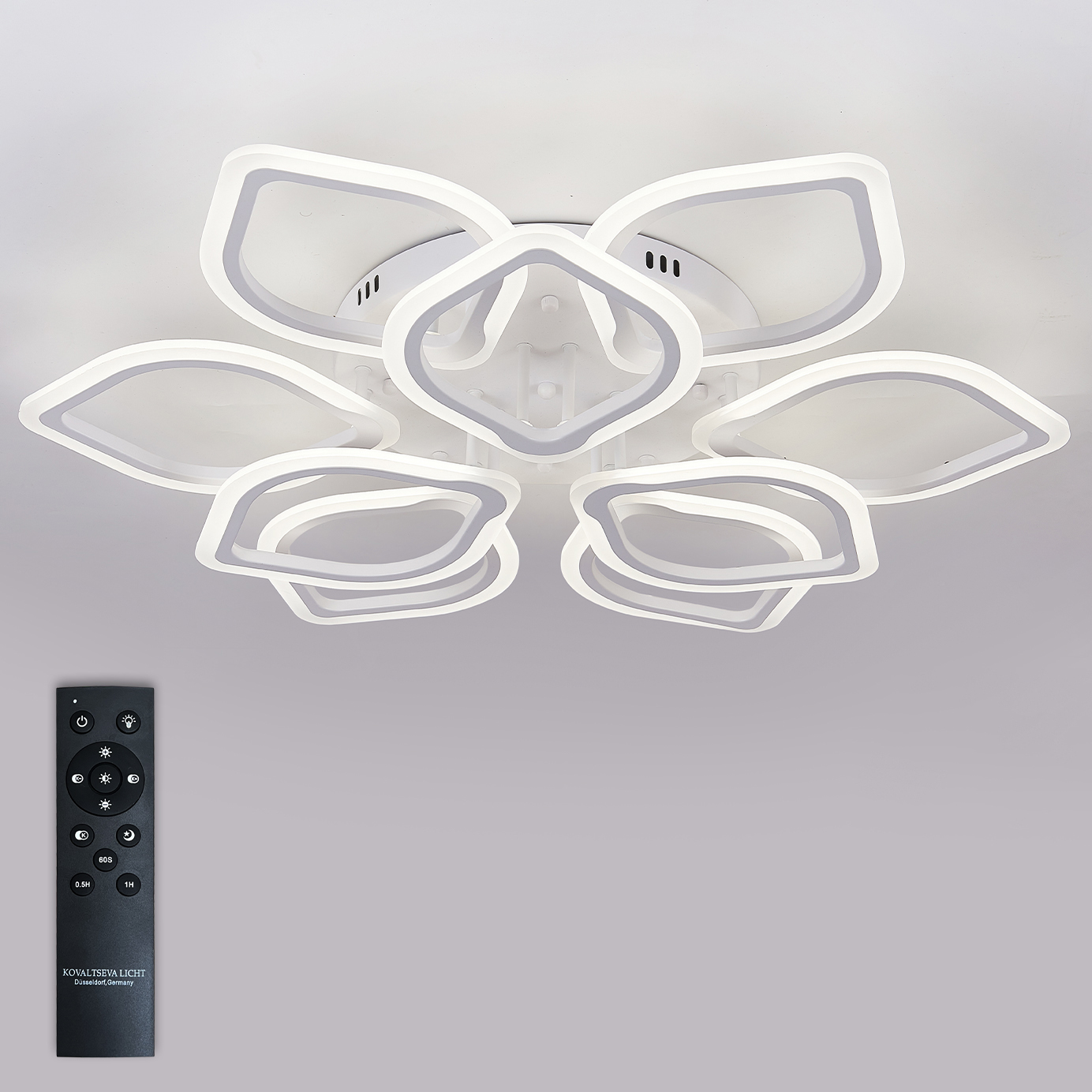 Люстра оснащена светодиодными лампами, что обеспечивает высокую энергоэффективность и долговечность. Общая мощность 240W со световым потоком 14000 lm позволяет осветить до 32 кв.м. Благодаря пульту дистанционного управления, вы можете легко регулировать яркость света, а также выбирать желаемый цвет освещения (теплый, холодный, нейтральный), создавая идеальную атмосферу в любой комнате.