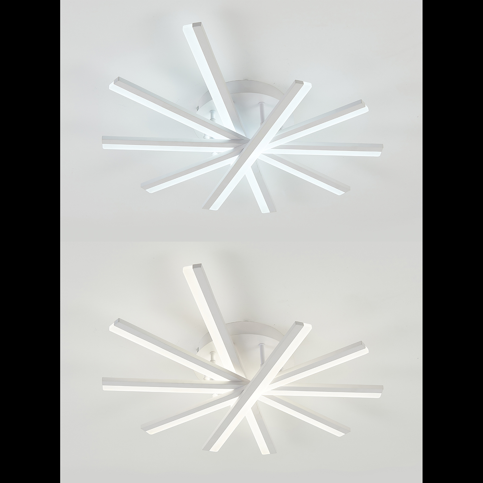 Люстра оснащена светодиодными лампами, что обеспечивает высокую энергоэффективность и долговечность. Общая мощность 100W со световым потоком 5000 lm позволяет осветить до 22 кв.м. Благодаря пульту дистанционного управления, вы можете легко регулировать яркость света, а также выбирать желаемый цвет освещения (теплый, холодный, нейтральный), создавая идеальную атмосферу в любой комнате.