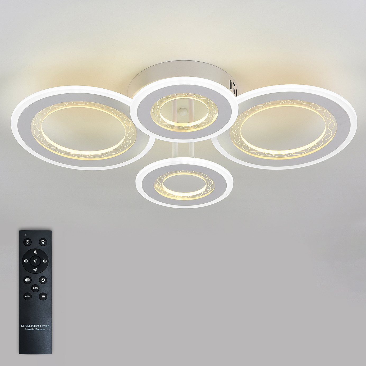 Люстра оснащена светодиодными лампами, что обеспечивает высокую энергоэффективность и долговечность. Общая мощность 140W со световым потоком 8400 lm позволяет осветить до 18 кв.м. Благодаря пульту дистанционного управления, вы можете легко регулировать яркость света, а также выбирать желаемый цвет освещения (теплый, холодный, нейтральный), создавая идеальную атмосферу в любой комнате.