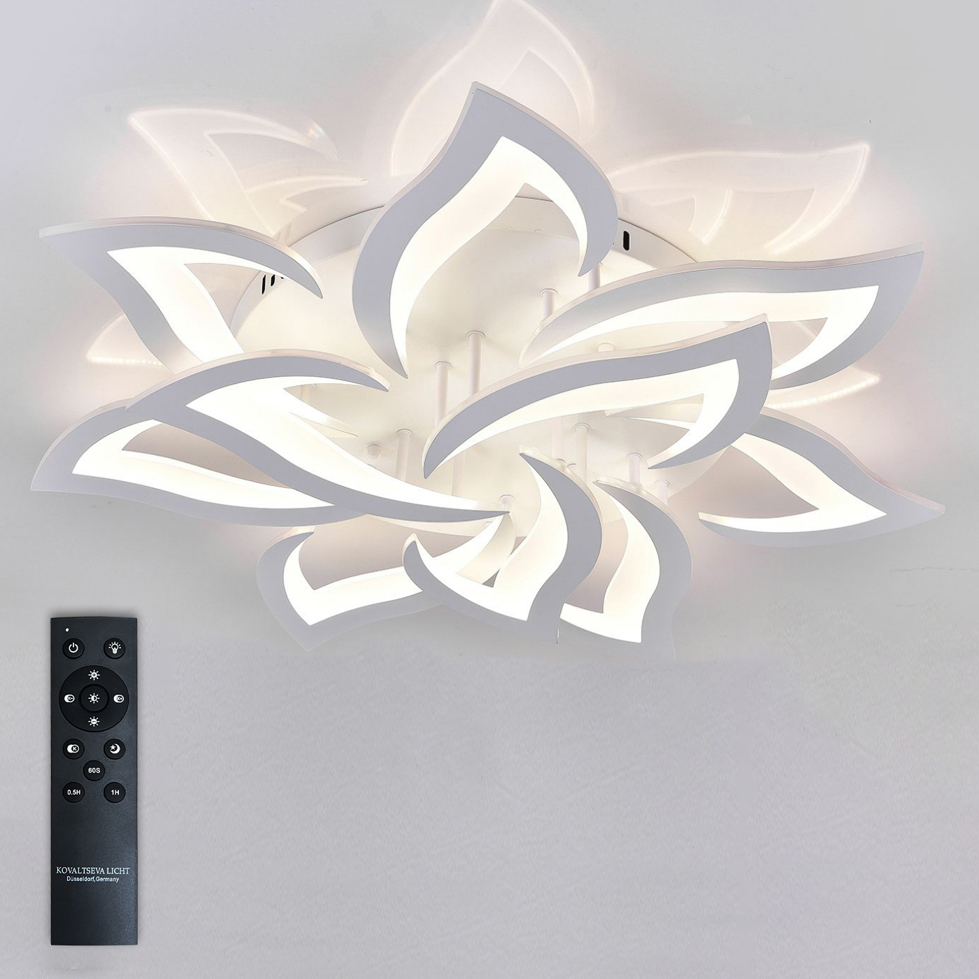 Люстра оснащена светодиодными лампами, что обеспечивает высокую энергоэффективность и долговечность. Общая мощность 180W со световым потоком 14000 lm позволяет осветить до 30 кв.м. Благодаря пульту дистанционного управления, вы можете легко регулировать яркость света, а также выбирать желаемый цвет освещения (теплый, холодный, нейтральный), создавая идеальную атмосферу в любой комнате.