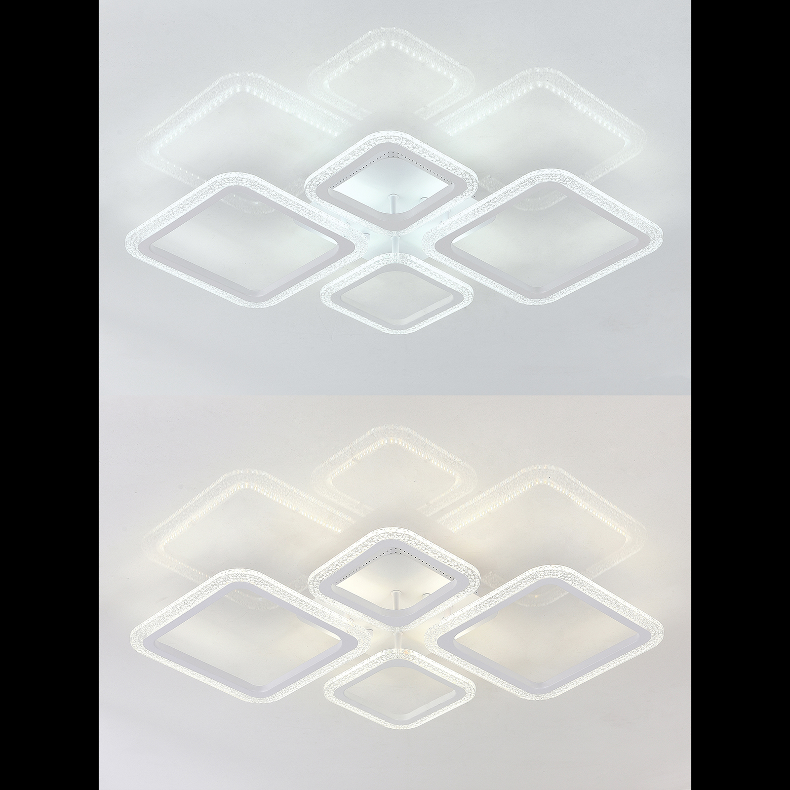 Люстра оснащена светодиодными лампами, что обеспечивает высокую энергоэффективность и долговечность. Общая мощность 80W со световым потоком 6800 lm позволяет осветить до 16 кв.м. Благодаря пульту дистанционного управления, вы можете легко регулировать яркость света, а также выбирать желаемый цвет освещения (теплый, холодный, нейтральный), создавая идеальную атмосферу в любой комнате.