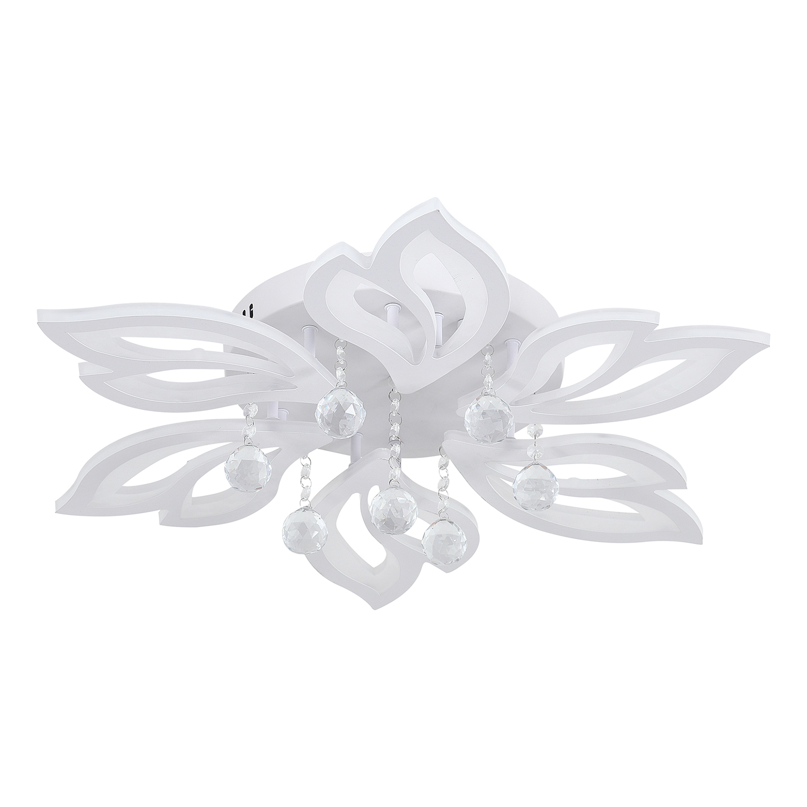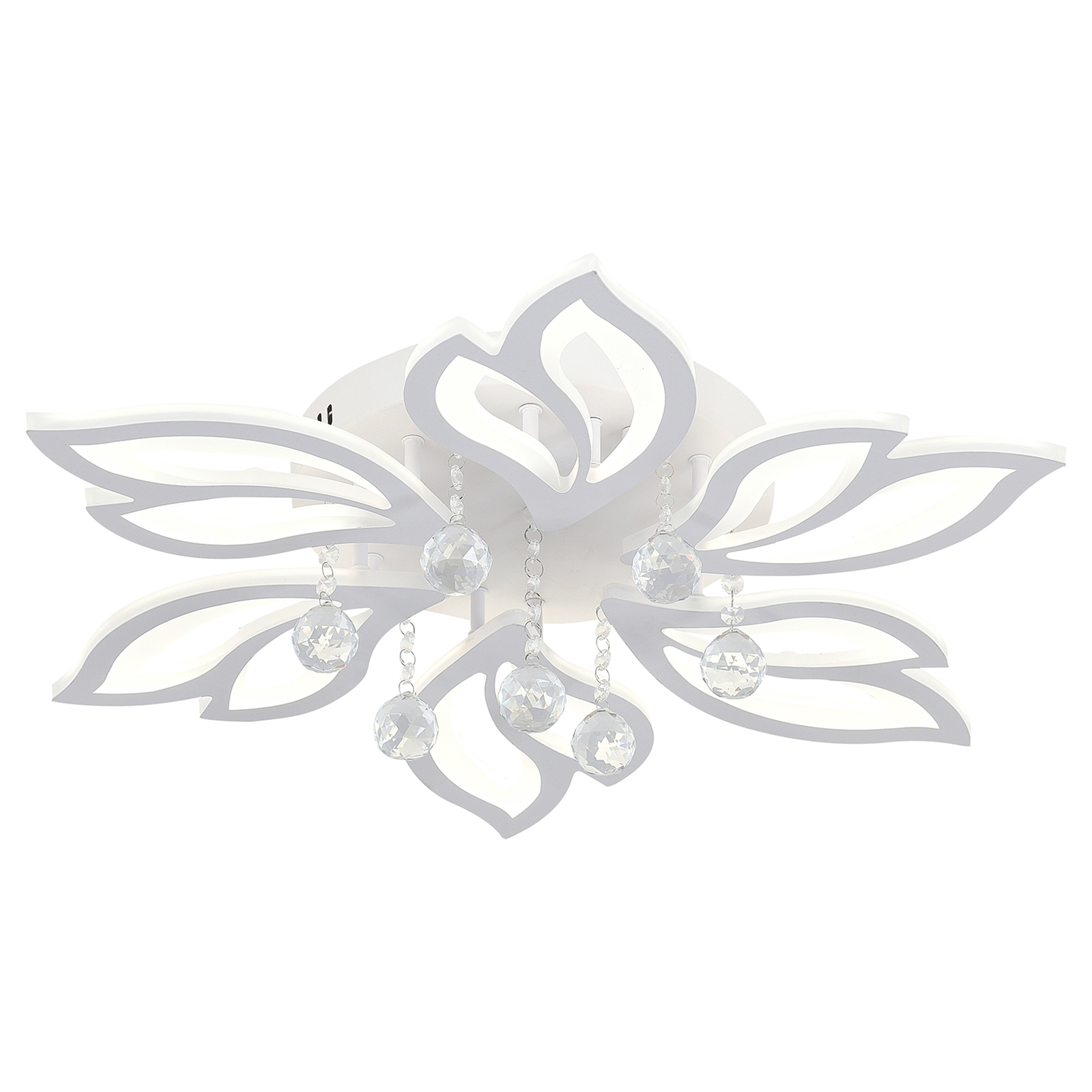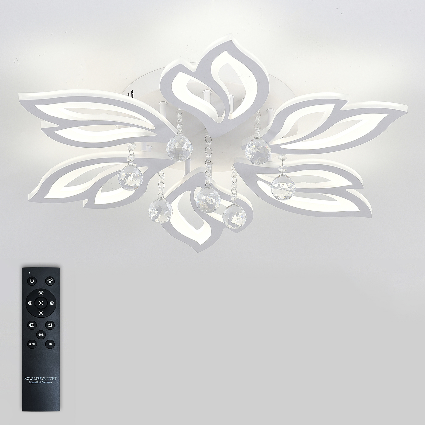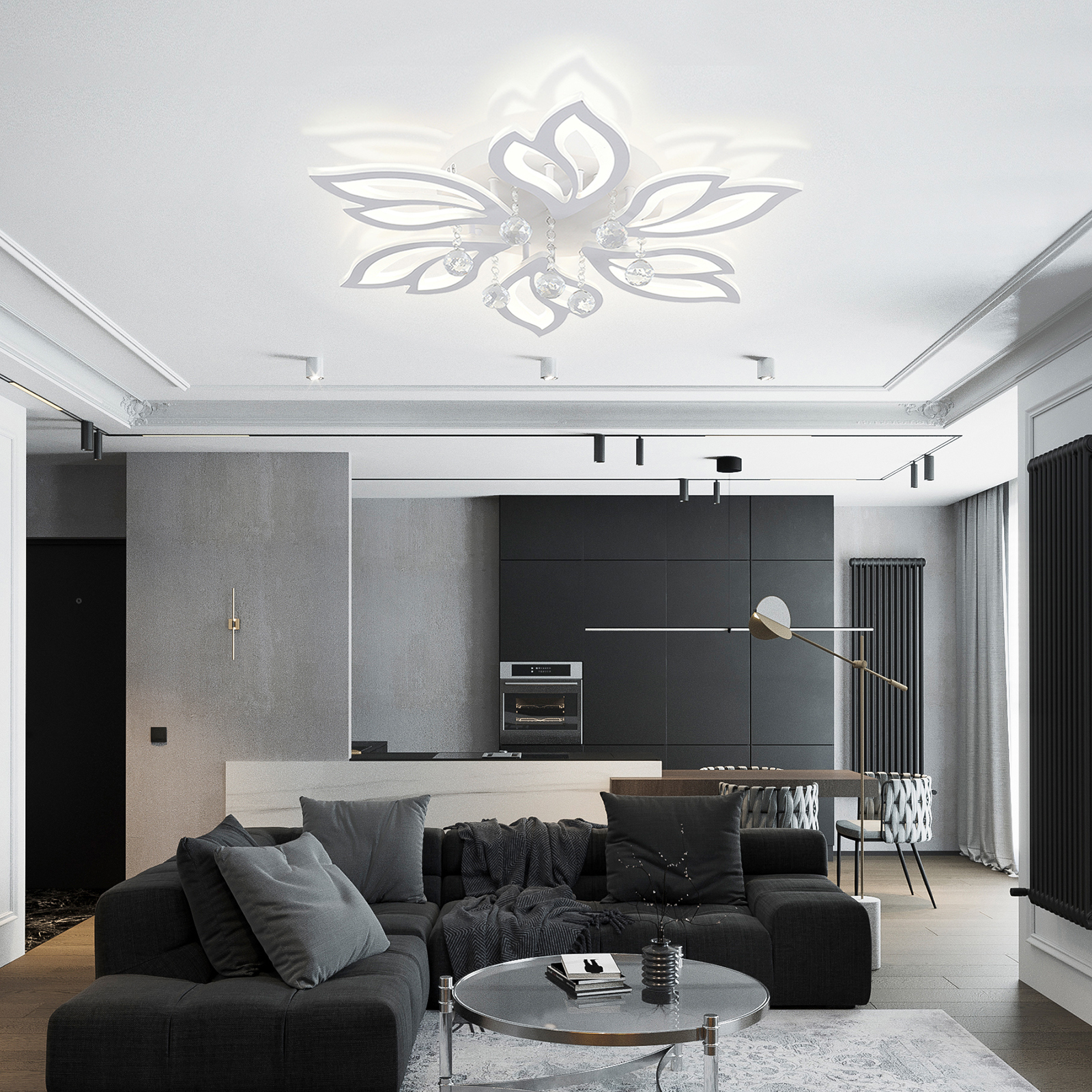 Люстра оснащена светодиодными лампами, что обеспечивает высокую энергоэффективность и долговечность. Общая мощность 120W со световым потоком 9400 lm позволяет осветить до 25 кв.м. Благодаря пульту дистанционного управления, вы можете легко регулировать яркость света, а также выбирать желаемый цвет освещения (теплый, холодный, нейтральный), создавая идеальную атмосферу в любой комнате.