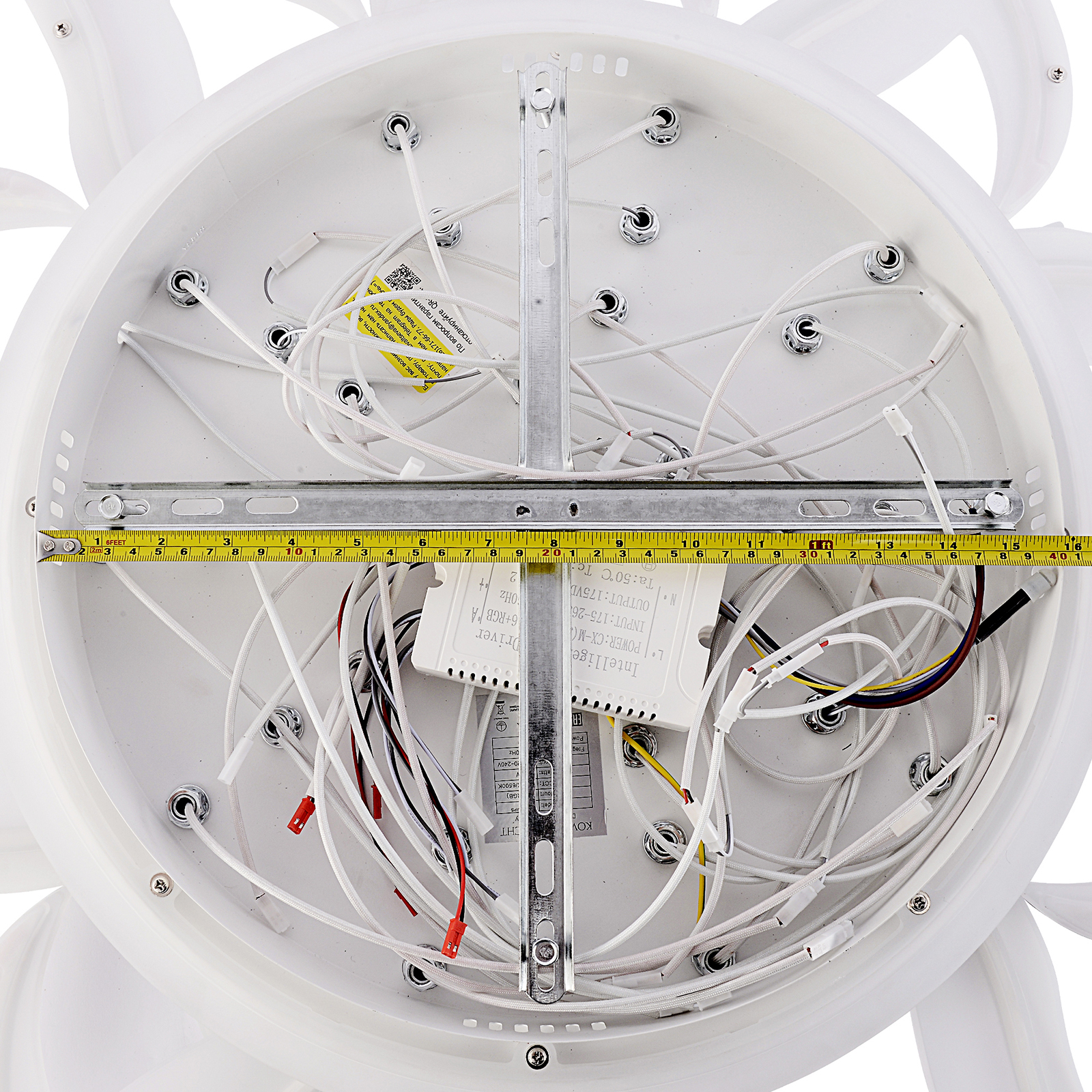 Люстра оснащена светодиодными лампами, что обеспечивает высокую энергоэффективность и долговечность. Общая мощность 270W со световым потоком 18900 lm позволяет осветить до 37 кв.м. Благодаря пульту дистанционного управления, вы можете легко регулировать яркость света, а также выбирать желаемый цвет освещения (теплый, холодный, нейтральный), создавая идеальную атмосферу в любой комнате.