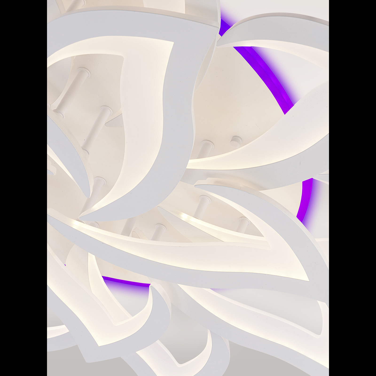 Люстра потолочная светодиодная с пультом ДУ от бренда Natali Kovaltseva представляет собой современное и функциональное решение для освещения вашего дома. Светильник выполнен в стиле хай-тек, который хорошо сочетается с современным интерьером, а также может стать отличным дополнением к классическому или модернистскому дизайну. Дополнительная цветная подсветка RGB имеет 7 ярких цветов, среди которых синий, фиолетовый, зелёный красный и другие. Создаст неповторимую атмосферу в Вашей комнате.