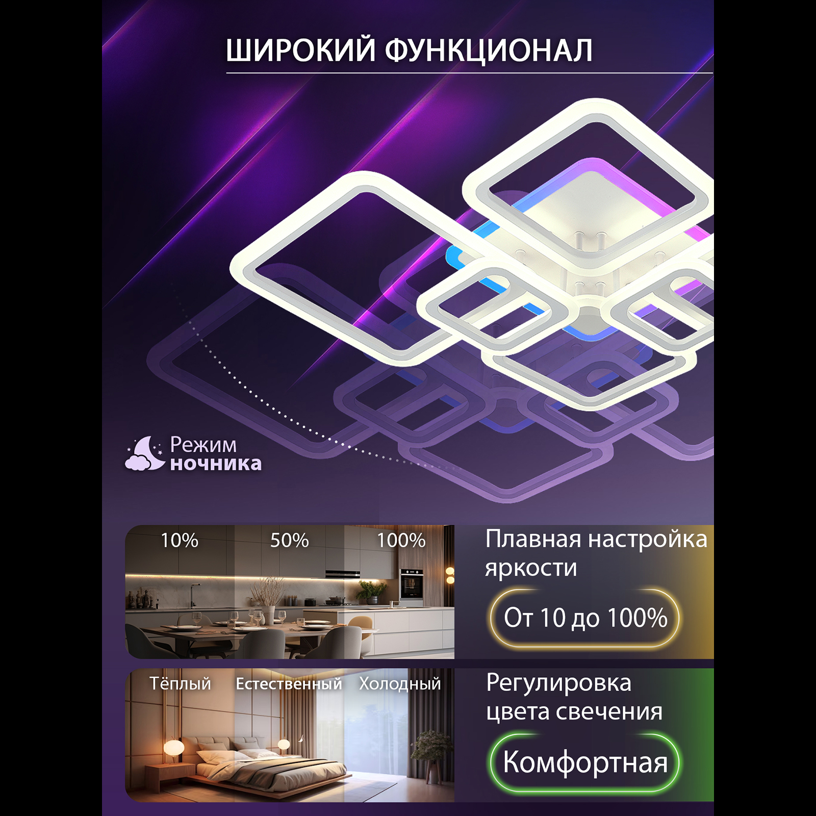 | Комплектация | Светильник, пульт ДУ, паспорт, инструкция |