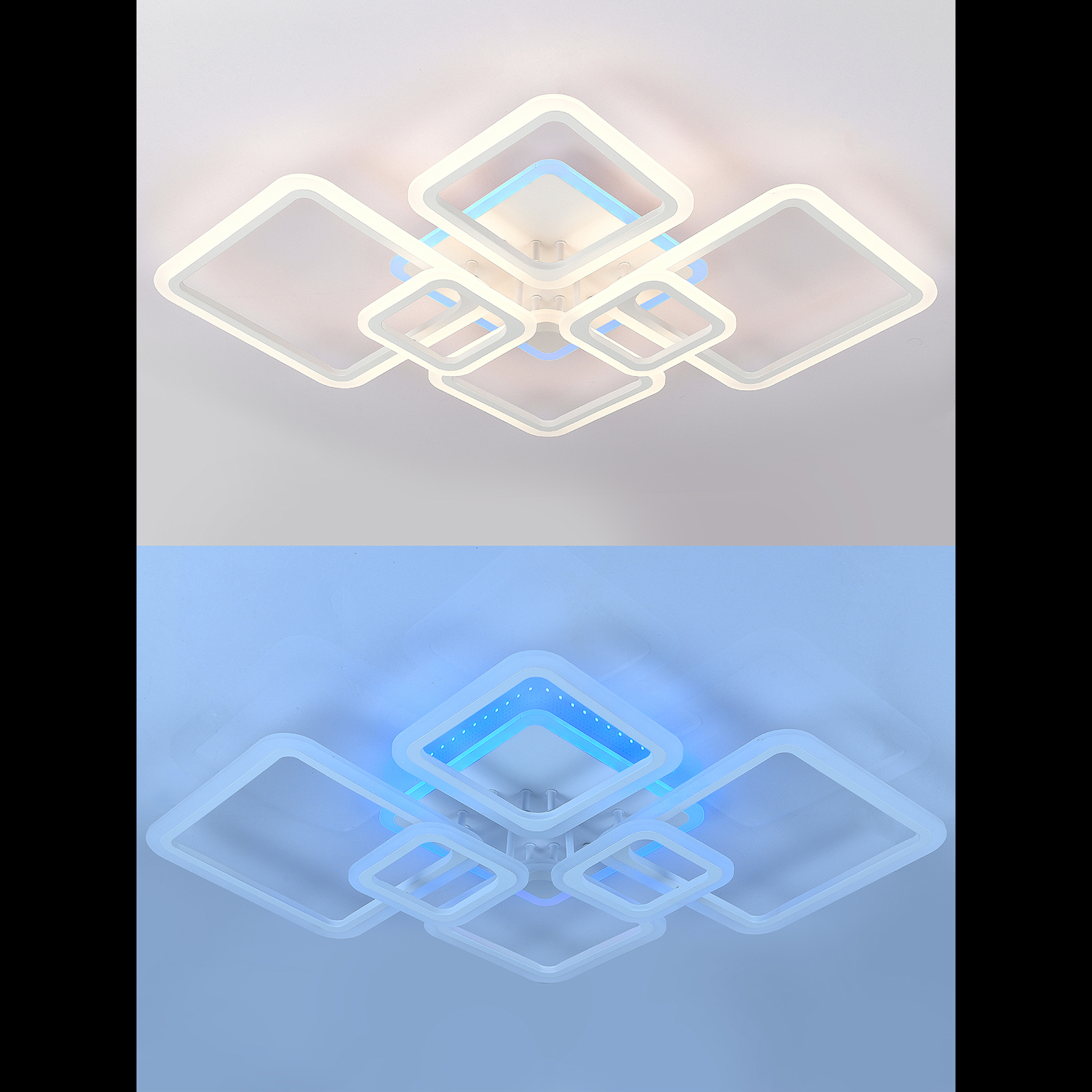 Люстра потолочная светодиодная с пультом ДУ от бренда Natali Kovaltseva представляет собой современное и функциональное решение для освещения вашего дома. Светильник выполнен в стиле хай-тек, который хорошо сочетается с современным интерьером, а также может стать отличным дополнением к классическому или модернистскому дизайну. Дополнительная цветная подсветка RGB имеет 7 ярких цветов, среди которых синий, фиолетовый, зелёный красный и другие. Создаст неповторимую атмосферу в Вашей комнате.