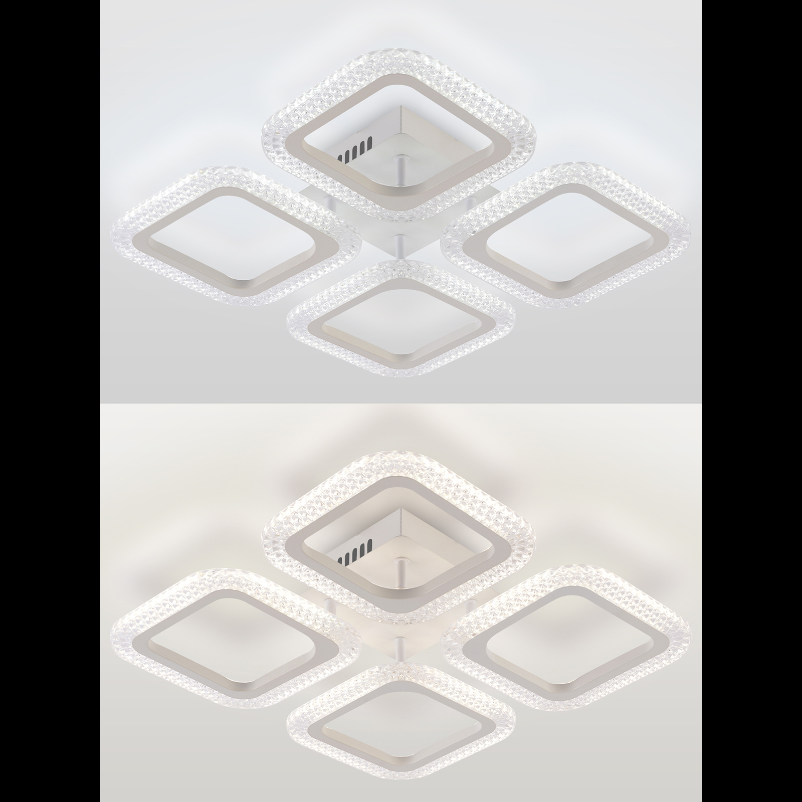 Люстра оснащена светодиодными лампами, что обеспечивает высокую энергоэффективность и долговечность. Общая мощность 64W со световым потоком 4480 lm позволяет осветить до 14 кв.м. Благодаря пульту дистанционного управления, вы можете легко регулировать яркость света, а также выбирать желаемый цвет освещения (теплый, холодный, нейтральный), создавая идеальную атмосферу в любой комнате.