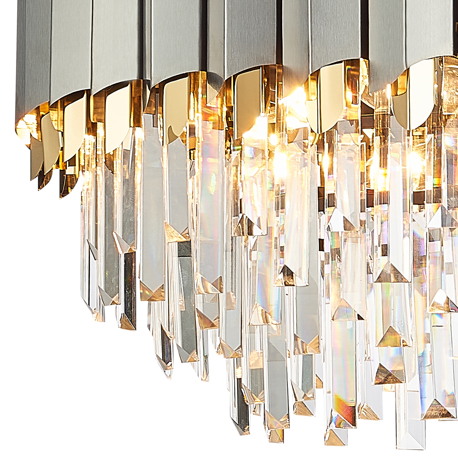Современный светильник из серии QUEEN II с использованием высококачественных материалов. Данная модель в цвете «Золото» станет отличным дизайнерским решением и позволит подчеркнуть стилистику интерьера. Основные элементы выполнены из: металл, нержавеющая сталь, хрусталь. Данный светильник рассчитан на 10 лампочек с цоколем E14, мощностью до 40W. Площадь освещения до 31 кв.м. Тип крепления: Планка. Производство светильников соответствует стандарту системы менеджмента качества ISO 9001-2000. На всю продукцию ТМ Natali Kovaltseva распространяется расширенная гарантия по программе лояльности клиентов.