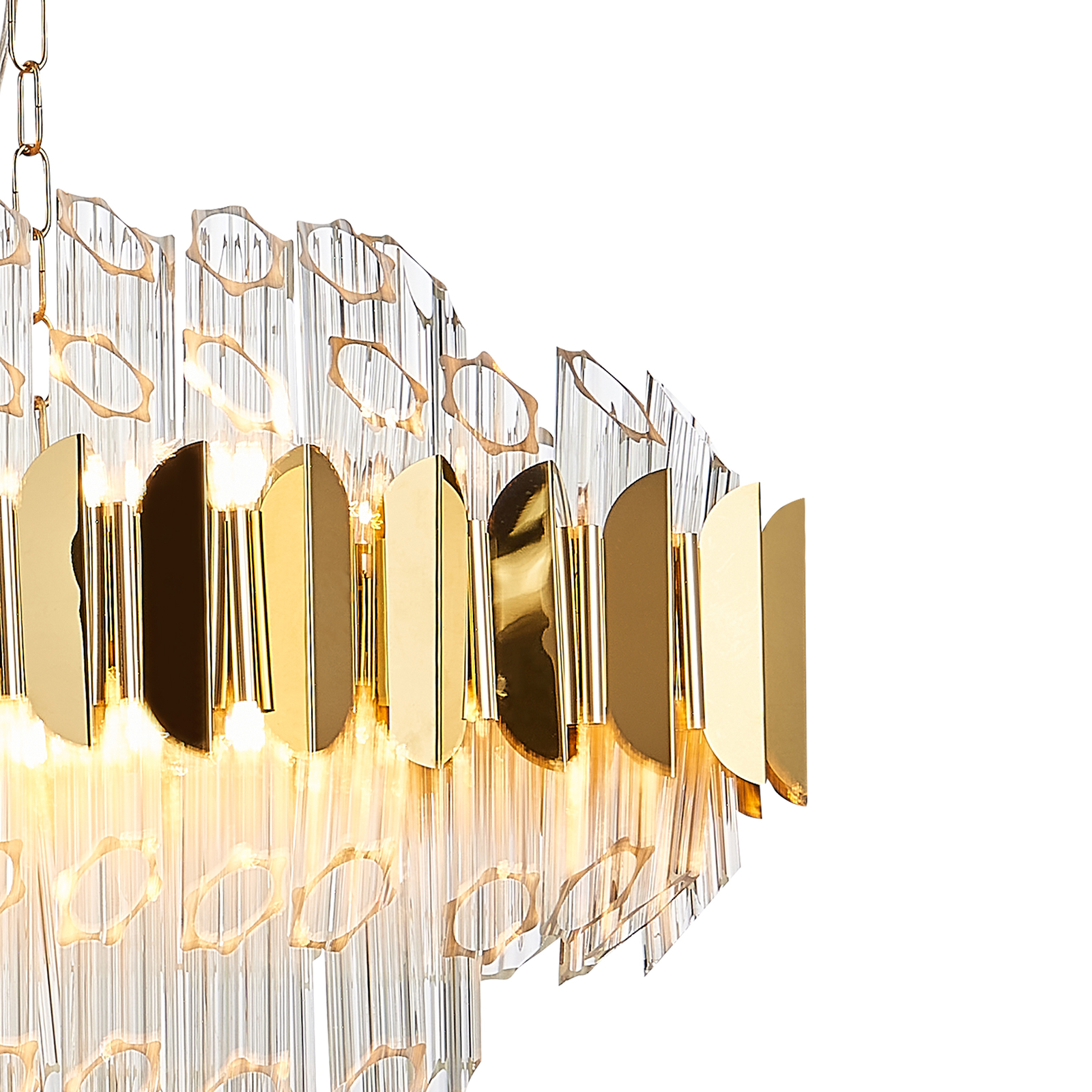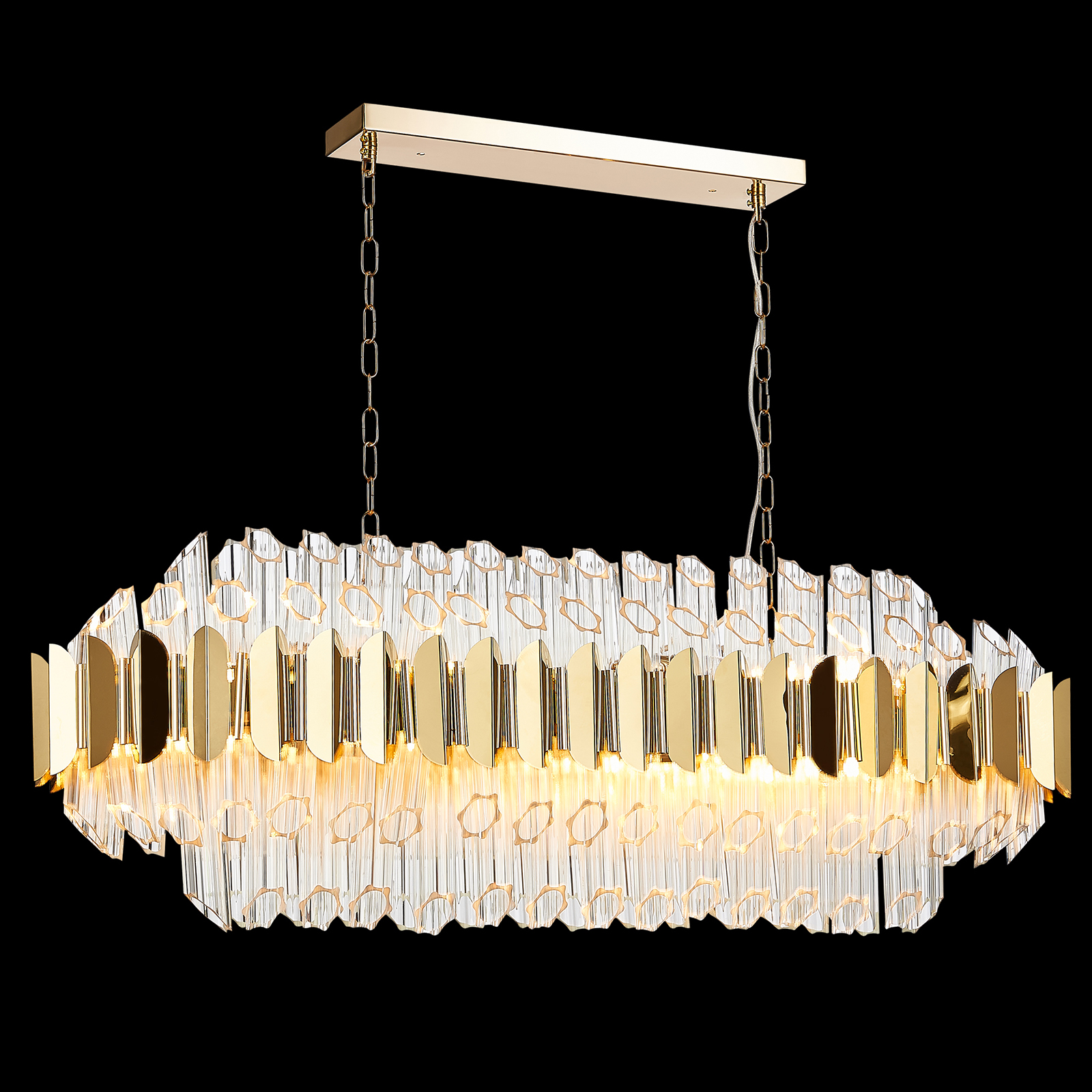 Современный светильник из серии RIVERA с использованием высококачественных материалов. Данная модель в цвете «Золото» станет отличным дизайнерским решением и позволит подчеркнуть стилистику интерьера. Основные элементы выполнены из: металл, нержавеющая сталь, стекло. Данный светильник рассчитан на 12 лампочек с цоколем E14, мощностью до 40W. Площадь освещения до 37 кв.м. Тип крепления: Планка. Производство светильников соответствует стандарту системы менеджмента качества ISO 9001-2000. На всю продукцию ТМ Natali Kovaltseva распространяется расширенная гарантия по программе лояльности клиентов.