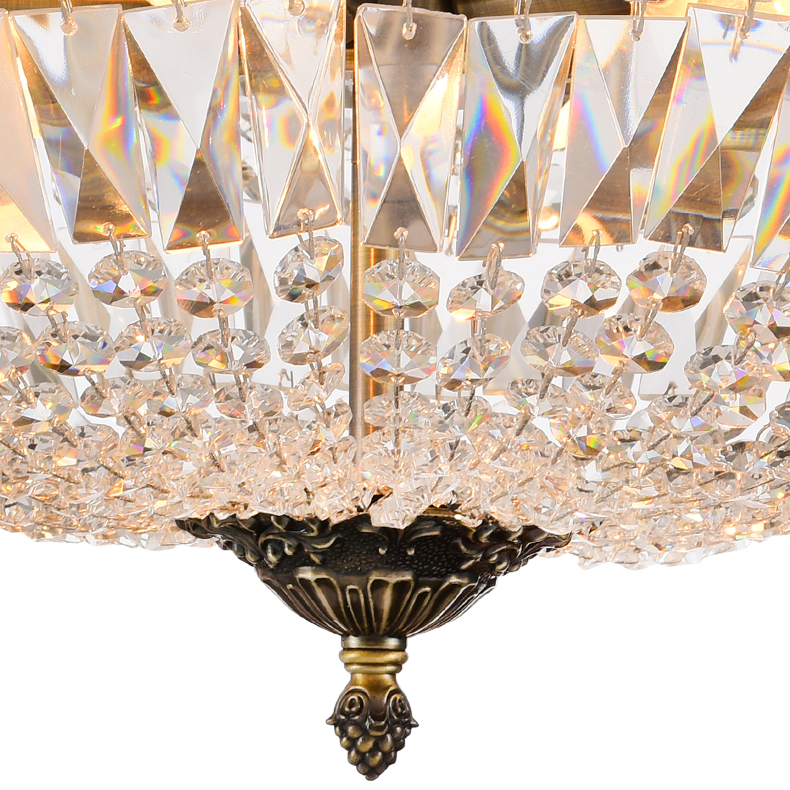 В данной коллекции NATALI KOVALTSEVA используется основание цвета античная бронза и высококачественный хрусталь. Используется надежный и презентабельный метод скрепления хрусталя, с использованием папильонов (скрепок для хрусталя). Обработка хрустальных подвесок подвергается только машинной обработке, что придает неповторимую игру света, делает грани более четкими. Дизайн и технологическая составляющая продукции разрабатывается в R&D центре компании, который находится в г. Дюссельдорф, Германия. Производство светильников соответствует стандарту системы менеджмента качества ISO 9001-2000. На всю продукцию ТМ Natali Kovaltseva распространяется гарантия. Светильник может осветить до 19 квадратных метров. Способ крепления: планка. Светильник укомплектован информативной инструкцией на русском языке, перчатки для сборки хрусталя в комплекте.