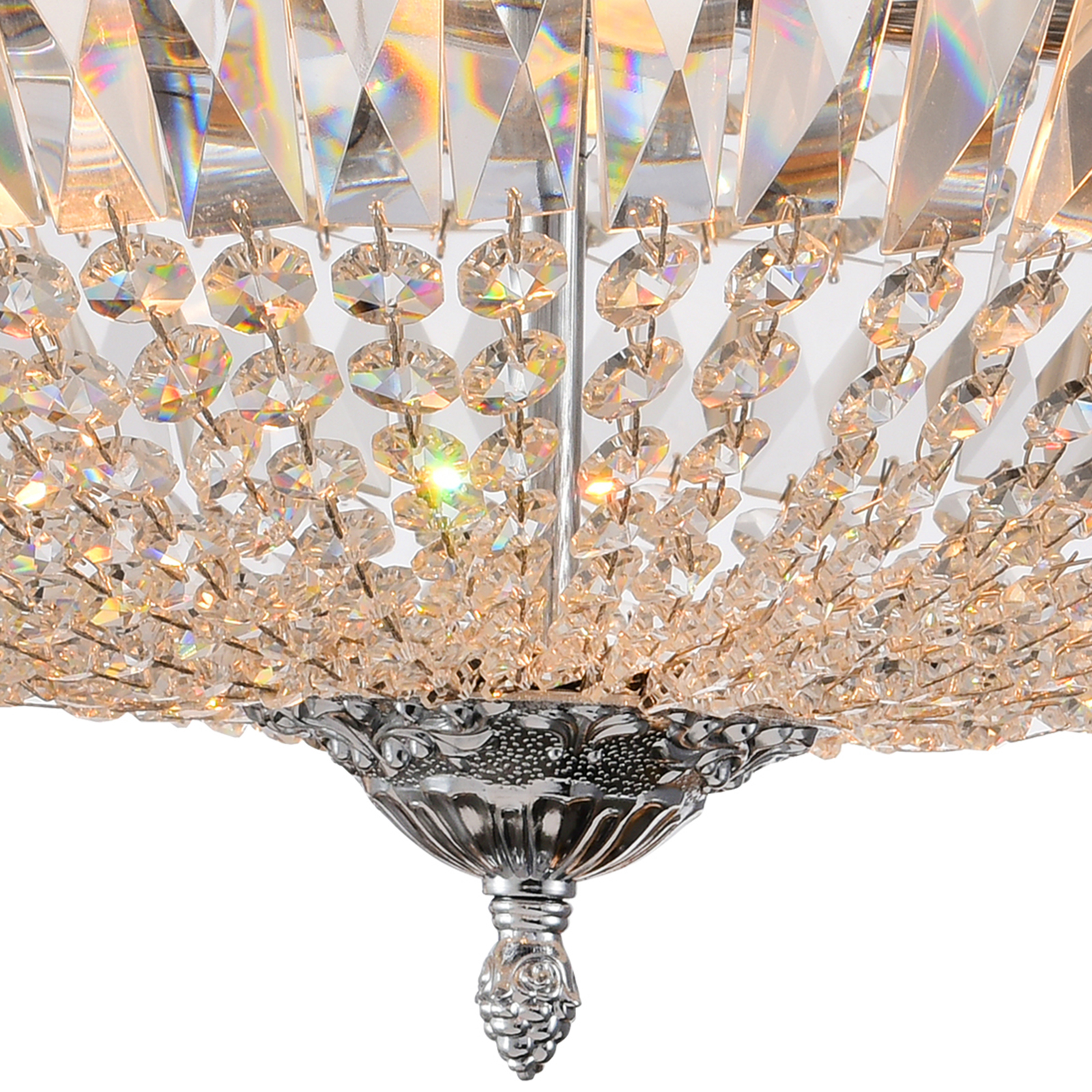 В данной коллекции NATALI KOVALTSEVA используется основание цвета хром и высококачественный хрусталь. Используется надежный и презентабельный метод скрепления хрусталя, с использованием папильонов (скрепок для хрусталя). Обработка хрустальных подвесок подвергается только машинной обработке, что придает неповторимую игру света, делает грани более четкими. Дизайн и технологическая составляющая продукции разрабатывается в R&D центре компании, который находится в г. Дюссельдорф, Германия. Производство светильников соответствует стандарту системы менеджмента качества ISO 9001-2000. На всю продукцию ТМ Natali Kovaltseva распространяется гарантия. Светильник может осветить до 19 квадратных метров. Способ крепления: планка. Светильник укомплектован информативной инструкцией на русском языке, перчатки для сборки хрусталя в комплекте.