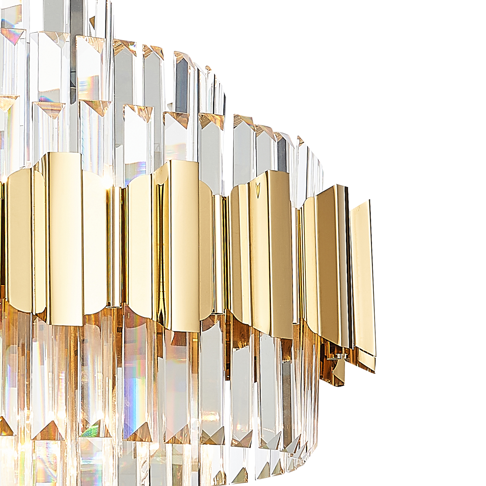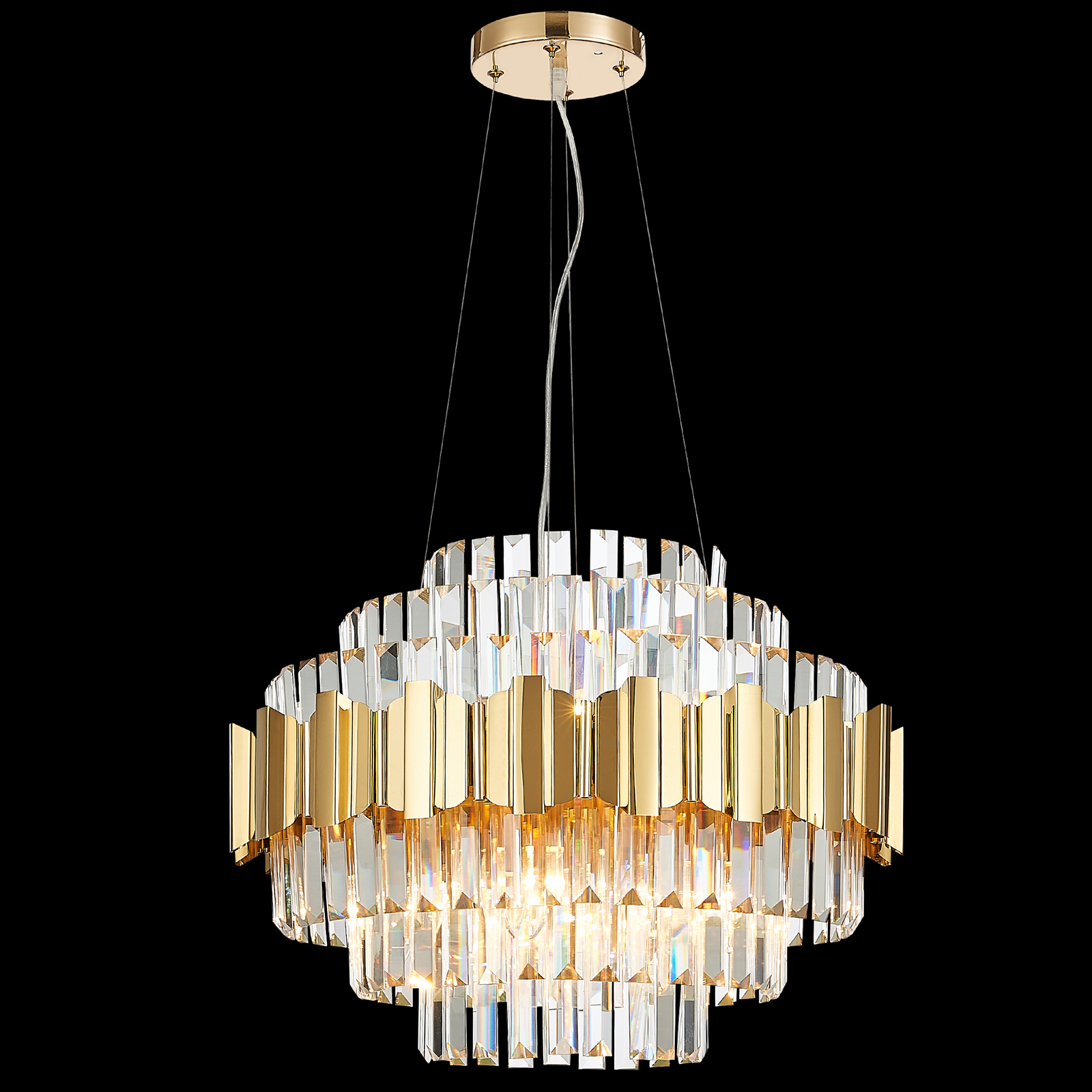 Современный светильник из серии RUBY с использованием высококачественных материалов. Данная модель в цвете «Золото» станет отличным дизайнерским решением и позволит подчеркнуть стилистику интерьера. Основные элементы выполнены из: металл, нержавеющая сталь, хрусталь. Данный светильник рассчитан на 10 лампочек с цоколем E14, мощностью до 40W. Площадь освещения до 31 кв.м. Тип крепления: Планка. Производство светильников соответствует стандарту системы менеджмента качества ISO 9001-2000. На всю продукцию ТМ Natali Kovaltseva распространяется расширенная гарантия по программе лояльности клиентов.